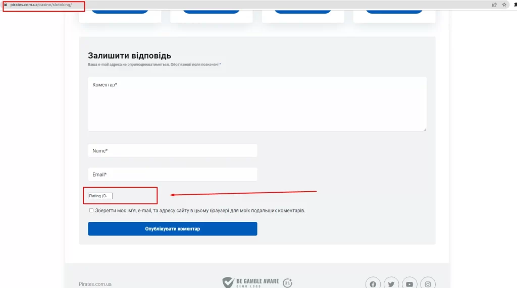 Кожен з азартних клубів має власний огляд на нашому сайті. У нижній частині даних оглядів ви можете залишити свій коментар про казино та оцінити його у числовому значенні від 0 до 10 балів. Пам’ятайте, що кількість балів не залежить від того, як сильно вам щастило при грі на сайті клубу. Це різні речі.