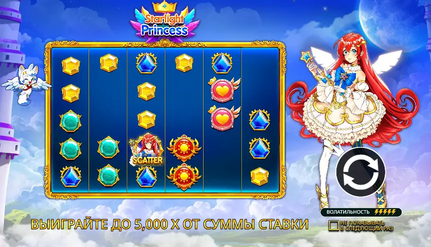 Слот Starlight Princess від Pragmatic Play є яскравим і динамічним ігровим автоматом, виконаним в аніме-стилі, натхненному японською естетикою чудових принцес. Головна героїня, сяюча принцеса світла, супроводжує гравця протягом усієї гри, додаючи атмосферу чарівництва та приголомшливого азарту.